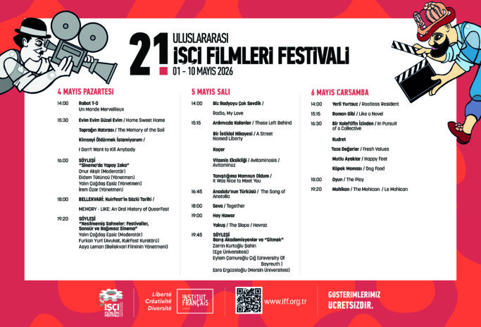 Institut français İzmir, emek ve toplumsal mücadeleleri, çalışma yaşamının gerçeklerini ve dayanışma biçimlerini odağına alan 21. Uluslararası İşçi Filmleri Festivali’nde katkı sunmaktan mutluluk duyar.