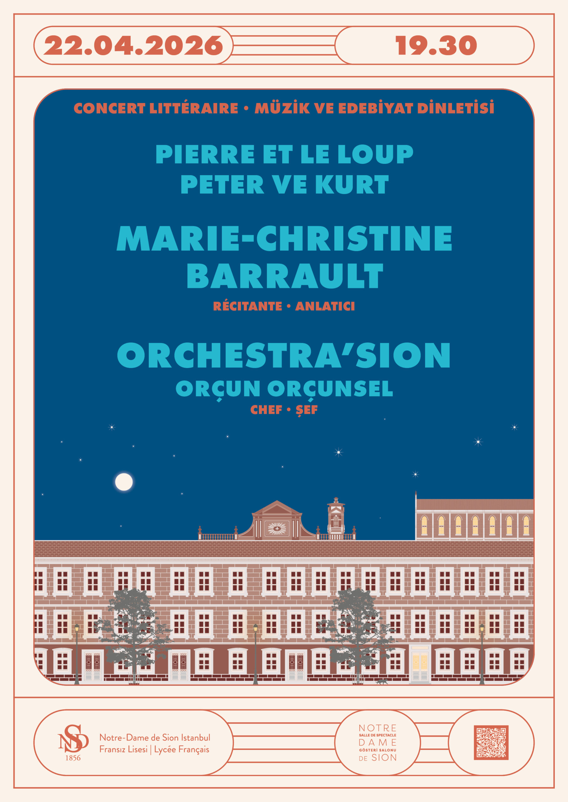 22 Nisan Çarşamba akşamı saat 19:30’da, Institut français Türkiye işbirliğiyle Notre-Dame de Sion Fransız Lisesi gösteri salonunda Sergei Prokofiev’in «Peter ve Kurt» eserini dinlemek üzere bir araya geliyoruz!