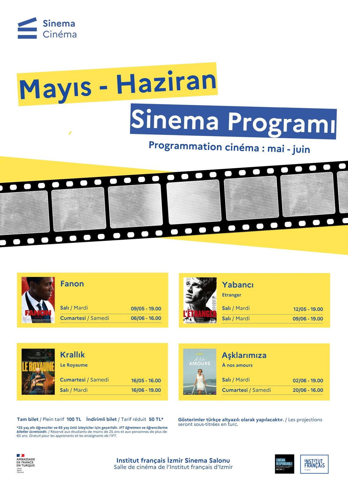 Sinema biletleri gösterimden 30 dakika önce Institut français İzmir girişinde satışa sunulacaktır. Yerler numarasız ve sınırlı sayıdadır.