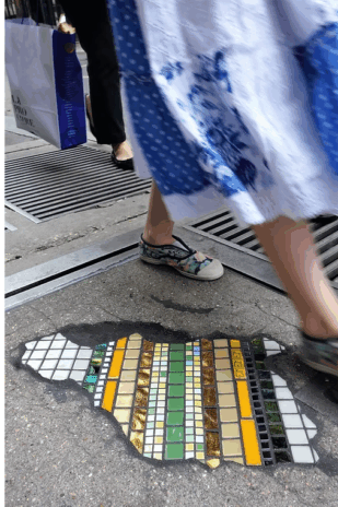 Ememem baptise ses œuvres des « flacks », mot qu’il dérive du mot flaque en français, ou « pansements pour trottoir ». Il les crée en composant des œuvres en carreaux de céramique et mosaïque insérées sur-mesure dans les nids-de-poule et les fissures de l’espace public. La presse internationale s’empare chaque semaine du phénomène Ememem qui a semé depuis 2016 une collection de 400 pansements pour trottoirs.