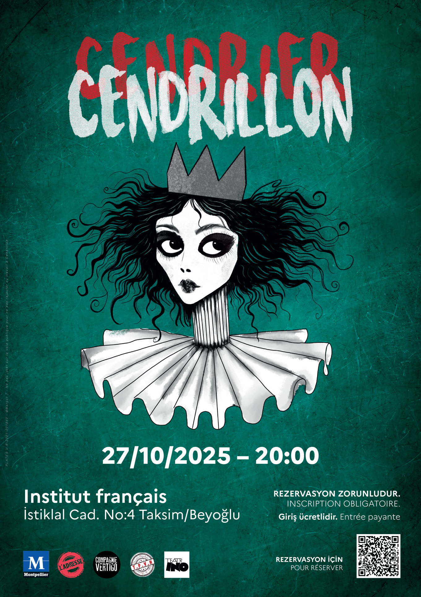 Dans cette version de Cendrillon, nous plongeons dans un univers dur, presque brut, où le merveilleux a disparu. À la place : des silences, des absences, des malentendus. Et une solitude immense chez chacun des personnages. C’est l’histoire d’une jeune fille qui, pour survivre à la mort de sa mère, s’accroche à une phrase mal comprise… C’est aussi celle d’un prince enfermé dans un mensonge… Ou encore celle d’adultes qui ne savent pas aimer… Il y a des mots qui protègent et d’autres qui blessent. Il y a l’humour, parfois. Mais un humour sec, grinçant. Comme un réflexe pour ne pas sombrer. Ce n’est pas un conte pour rêver. C’est une histoire pour comprendre ce que ça fait, de perdre, d’aimer, de mentir, de se taire. Pour comprendre ce que ça coûte, parfois, de grandir. C’est cette tension-là que nous portons sur scène. Le spectacle est né de la rencontre entre la compagnie Vertigo et la compagnie franco-turque Teatrino, lors du Festival Off d’Avignon 2024. Deux univers artistiques qui partagent le goût des textes puissants, du jeu à vif, du théâtre ancré dans le réel. Ensemble, nous avons eu envie de faire entendre cette parole contemporaine, crue, simple et profonde.