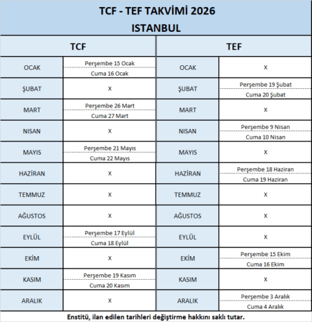 - TCF – Fransızca bilgisi testi