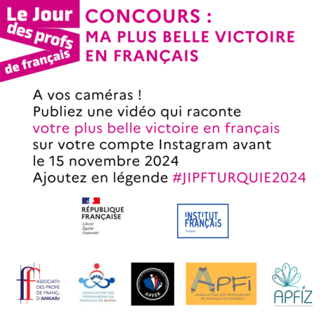 Parce que l’enseignement du français, c’est un sport-co, une affaire d’équipe, toutes les APF @apfa.turquie @apfbu @apf.eskisehir @apft.istanbul @apfiz ainsi que le service culturel de l’ambassade de France vous accompagne dans ce concours pour franchir la ligne d’arrivée !